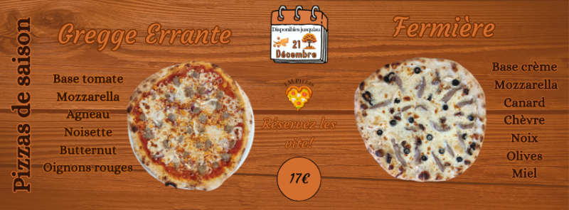 Faites-vous plaisir avec notre pizza du mois ou nos pizzas de saisons. Attention elles sont à durée limitée ;)